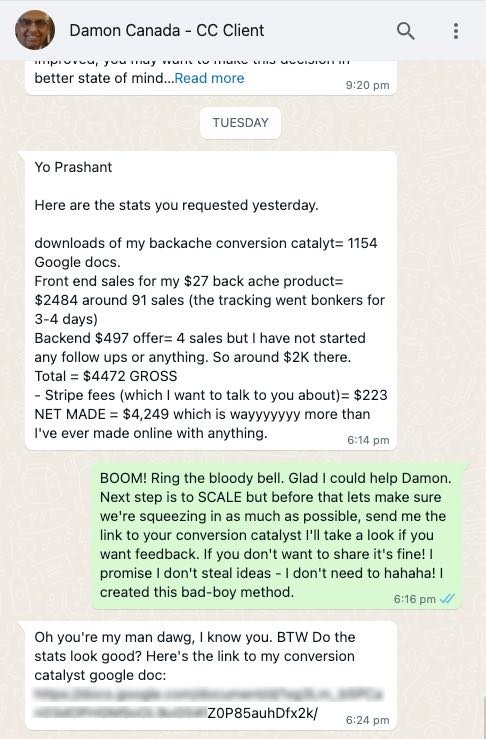 The support + accountability in Conversion Magnets makes it feel like a $2000 program… but it’s just $37 🤯 I made my FIRST EVER SALE with this a few weeks back... Brought in a little over $7K last month. I'm sorry I doubted you Prashant.