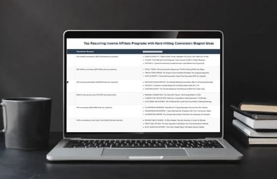Swipe files of high ticket + recurring affiliate programs that are tried and tested...& the simple system to promote multiple offers with the same documents.